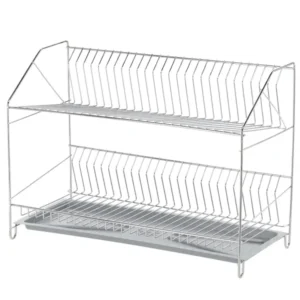 A kétszintes, króm bevonatú csepegtető állvány 50 cm-es szélességével helytakarékosan rendszerezi tányérjaidat és csészéidet, miközben a kivehető tálca tisztán tartja a pultot.