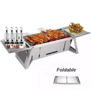 • Hordozható kialakítás: Az összecsukható asztali grill hordozhatóságot előtérbe helyező kialakítással rendelkezik, lehetővé téve a felhasználók számára, hogy könnyedén szállítsák és tárolják. Kompakt formája kiváló társ a szabadtéri tevékenységekhez, mint például kempingezés, piknikek és tailgating, biztosítva, hogy a finom grillezett ételek mindig elérhetők legyenek, bárhová is megy.