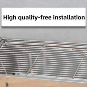 • Tartós szerkezet: Kiváló minőségű élelmiszeripari rozsdamentes acélból készült, ez a grill kivételes tartósságot és hosszú élettartamot biztosít, még gyakori használat mellett is. Ez a robusztus szerkezet nemcsak ellenáll a kültéri környezet viszontagságainak, hanem idővel megőrzi minőségét is, megbízható teljesítményt nyújtva számtalan grillezési alkalom során.