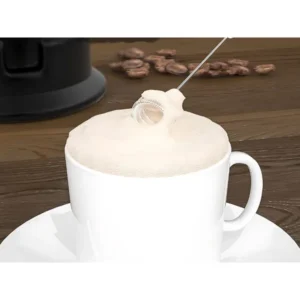 A 2 × AA elemmel működő készüléket egyetlen gombbal indíthatod, kompakt felépítése pedig minimális helyet igényel. A mellékelt fém állvány rendezetten és higiénikusan tartja a habosítót, így mindig kéznél lesz.