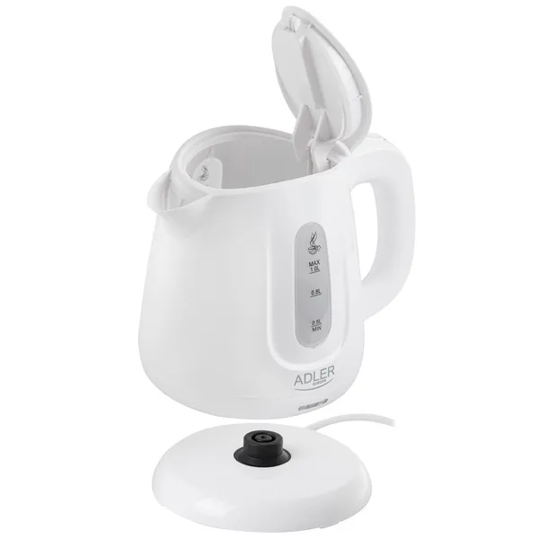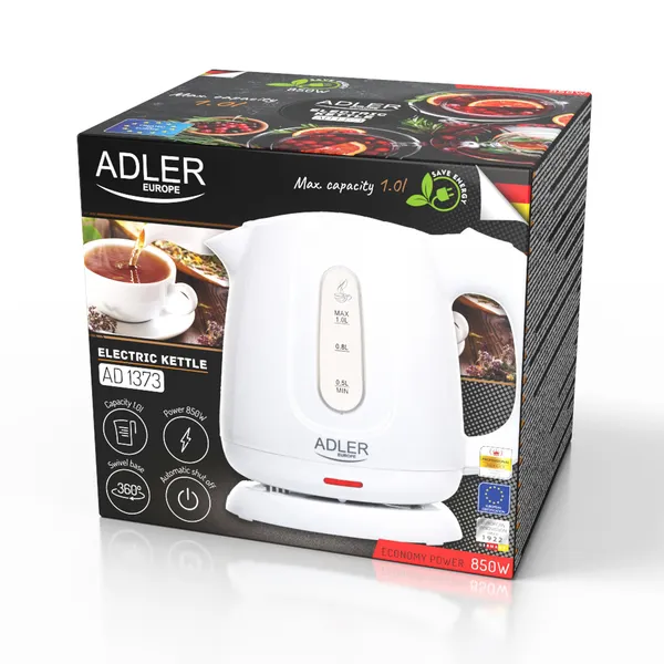 Az 1,0 literes, fehér műanyag vízforraló ideális választás a mindennapi teázáshoz, kávéhoz vagy instant levesekhez. Az 850 W-os teljesítmény gyors felfűtést biztosít, a lapos, rozsdamentes acél fűtőszál pedig megkönnyíti a tisztítást.
