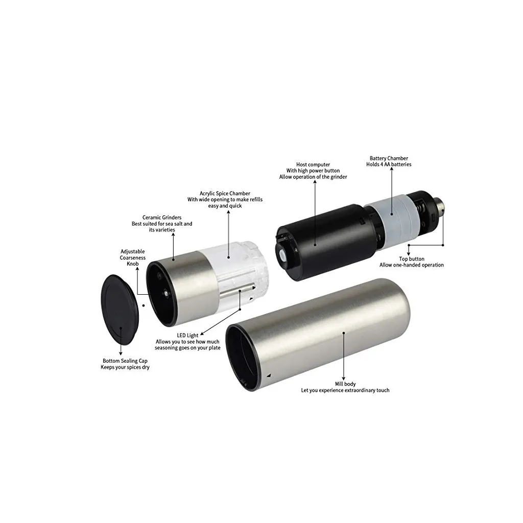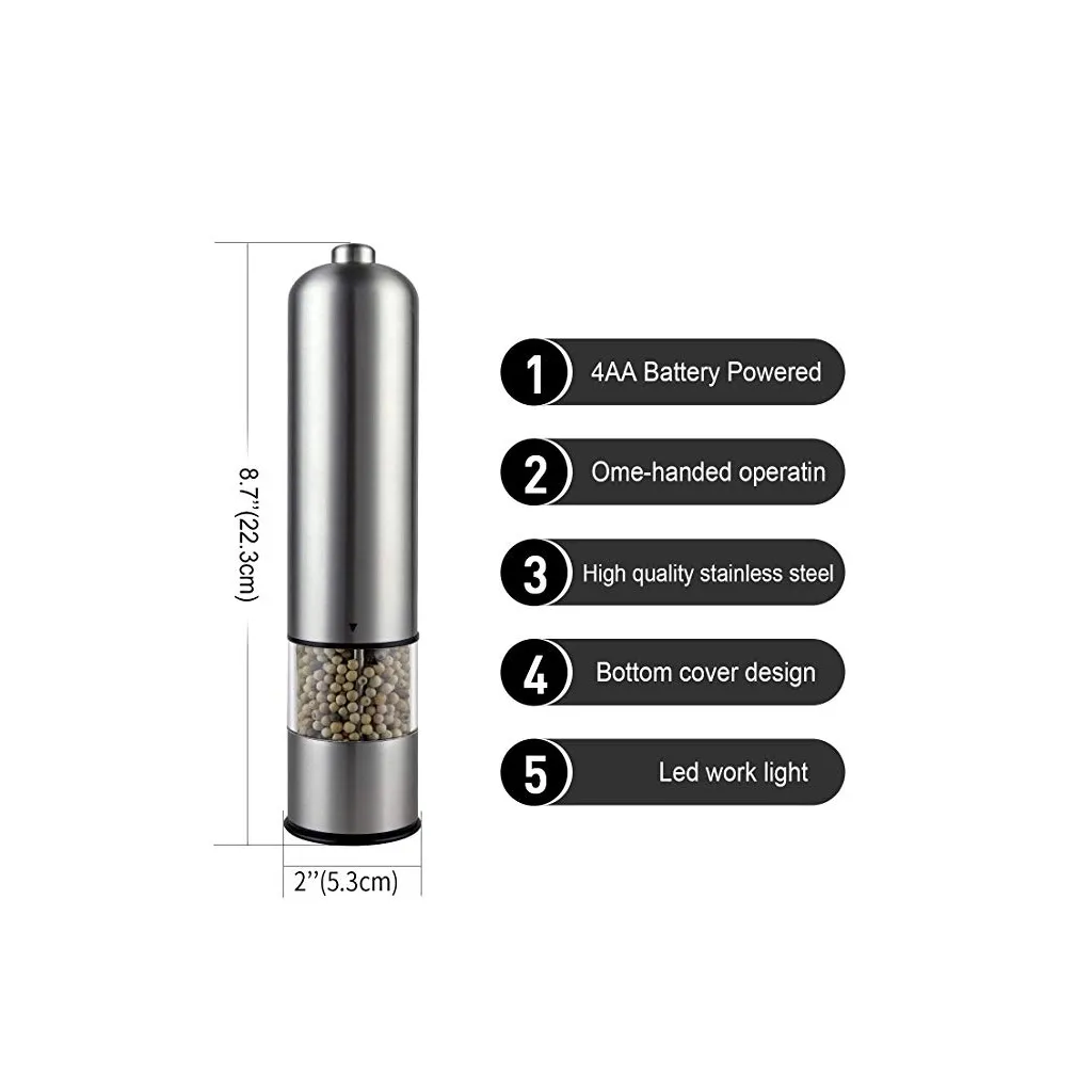• Erőteljes és gyors motorja hosszú távon is megbízható marad, nem rozsdásodik és nem korróziódnak, így ételei biztonságban vannak. Garantáltan nem dugul el vagy akad el, még a legkeményebb borsok, kóser só, Himalája só vagy más fűszerek esetén sem. ️