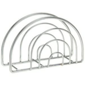Praktikus félköríves kialakítása kevesebb helyet foglal, miközben stabilan, rendezetten tartja a szalvétákat, és fényes krómozott felületével eleganciát visz minden terítékbe. Rozsdamentes acél anyaga ellenáll a rozsdának és könnyen tisztítható, így hosszú távon is megőrzi csillogását.