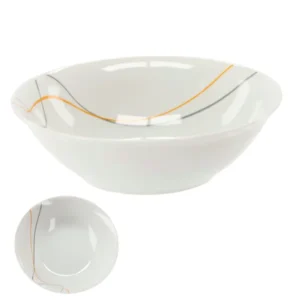 Letisztult, mégis figyelemfelkeltő kerek porcelántál, amely 18 cm-es méretével ideális saláták, gyümölcsök vagy köretek szervírozásához. Elegáns dekorációja ünnepi és hétköznapi terítékhez egyaránt passzol, így minden étkezést látványosabbá tesz.
