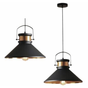 Csodálatos retro stílusú dekorációs darab – csillár fekete és arany árnyékolóval! Lehetőség van a magasság beállítására (35 és 120 cm között), ami lehetővé teszi, hogy a lámpát jobban hozzáigazítsa a helyiségen belüli körülményekhez. Nagyszerű ötlet elegáns loft stílusú helyiségek díszítésére vagy sötét sarkok feldobására! Tökéletesen illeszkedik mind a klasszikus kerek E27-es izzókhoz, mind az azonos menettel rendelkező bármilyen dekoratív izzókhoz!