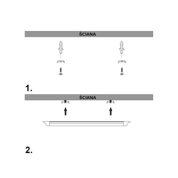 • Szerelés: két tipli furat, majd sínre felcsúsztatva percek alatt rögzíthető