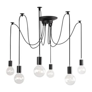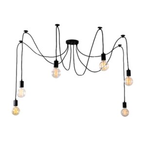 Csodálatos dekorációs elem – egy pókcsillár akár 6 fényponttal! Minden fénypont 115 cm hosszú kábellel rendelkezik, E27-es izzófoglalattal. Lehetőség van ennek lerövidítésére, ami lehetővé teszi, hogy jobban alkalmazkodjon a szoba belső terének körülményeihez. Nagyszerű ötlet elegáns loft stílusú helyiségek díszítésére vagy sötét sarkok feldobására! Tökéletesen illeszkedik mind a klasszikus kerek E27-es izzókhoz, mind az azonos menettel rendelkező bármilyen dekoratív izzókhoz!
