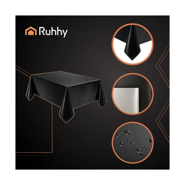 • RUHHY fekete fólia asztalterítő, 137×274 cm, víz- és foltálló