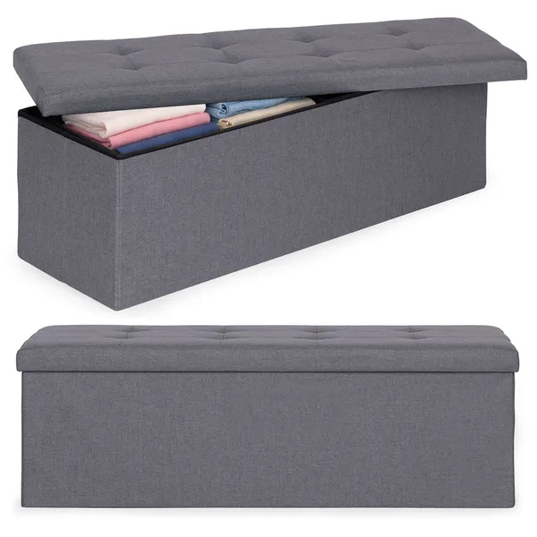 • Tárolós kárpitozott ülőpad 111×38 cm, világosszürke, 80 kg