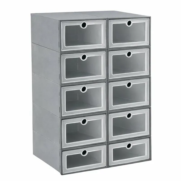 • Cipőtároló doboz szett 10 db, szürke, vékony műanyag, 32×21×12 cm