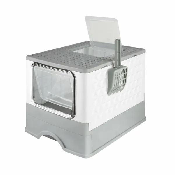 • Zárt macskaalom tálca két nyílással, kihúzható fiókkal, szürke-fehér