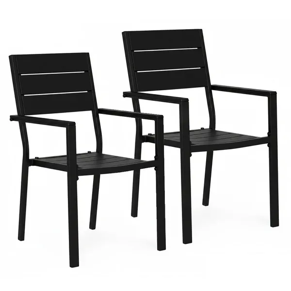 • 2 db kerti szék szett teraszra/balkonra, acél váz, HDPE ülés, fekete