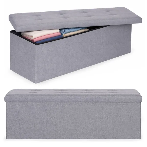 • Tárolós, steppelt kárpitozott ülőpad 111×38 cm, világosszürke