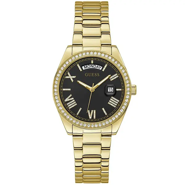 • Guess Luna női karóra, aranyszínű acél, fekete számlap, kvarc, 37 mm