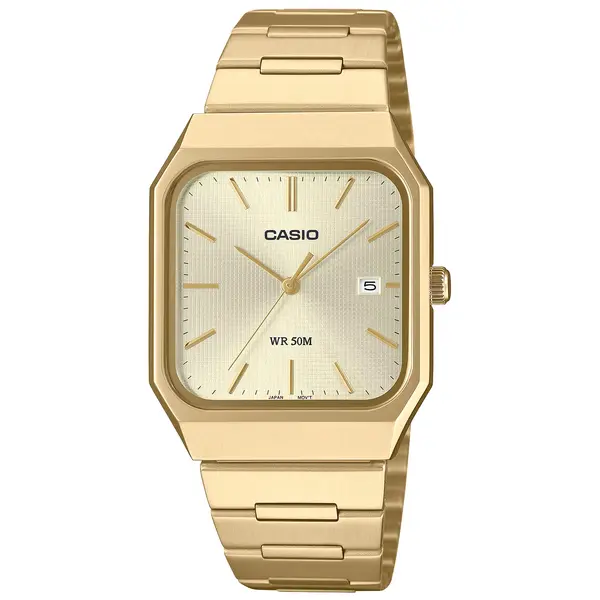 • Casio férfi karóra arany számlappal, acél szíjjal, dátummal, WR50