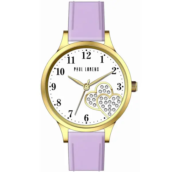 • Női analóg karóra 30 mm fehér számlap, lila bőrszíj, arany tok, Miyota kvarc