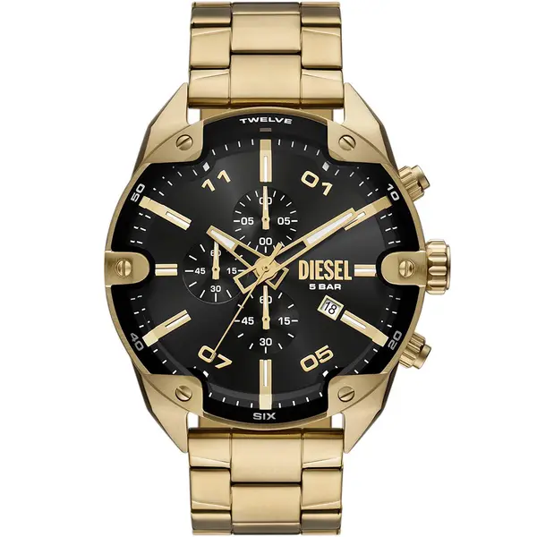 • Diesel DZ4608 férfi kvarc karóra, aranyszínű acél szíjjal, kronográffal