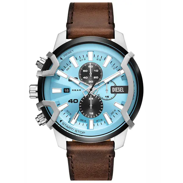 • Diesel Griffed DZ4656 férfi kronográf óra, 46 mm, kék számlap, bőr szíj
