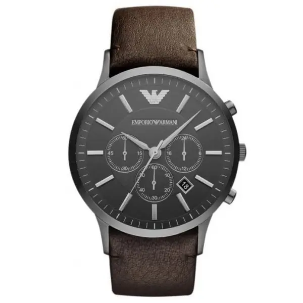 • Emporio Armani AR2462 férfi kvarc karóra, bőr szíj, fekete számlap, WR50
