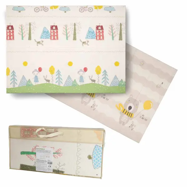• Kétoldalas összecsukható XPE habszivacs játszószőnyeg 150×200 cm, mackó és fa mintával