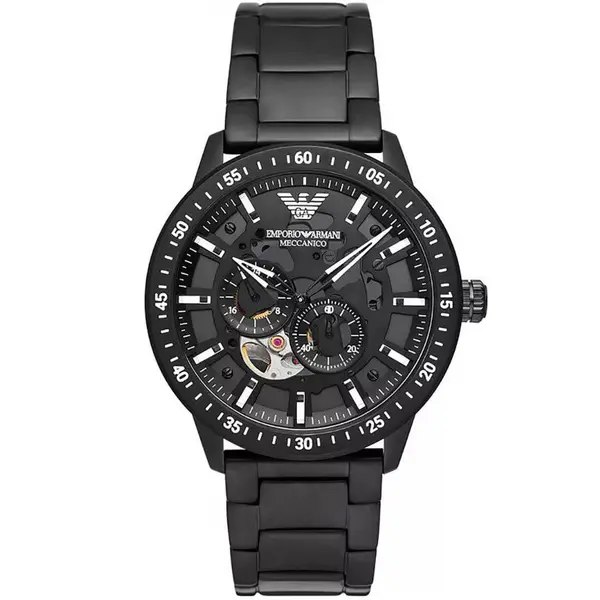 • Emporio Armani AR60054 férfi automata óra, fekete acél, skeleton számlap