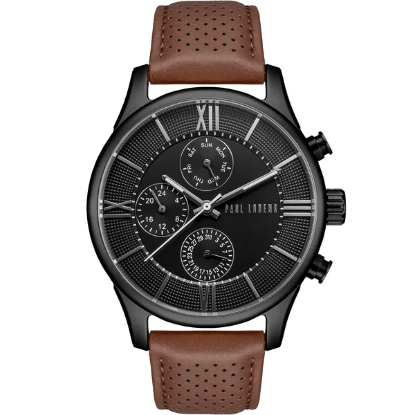 • Férfi karóra Paul Lorens PL11652A6-1B2 bőr szíjjal, fekete tok, WR30