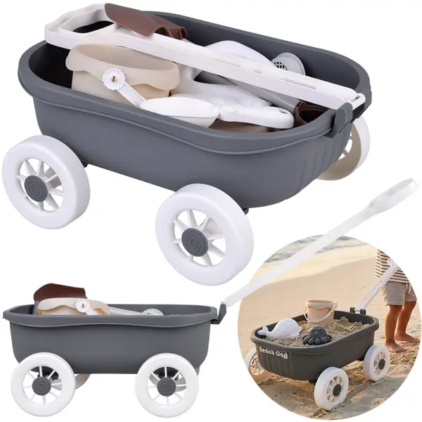• Homokozó szett húzható kocsival, vödörrel és formákkal, 16 részes