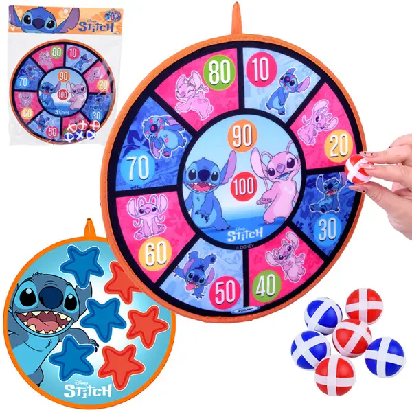 • Kétoldalas tépőzáras célbalábla Stitch mintával, 36 cm + 6 labda