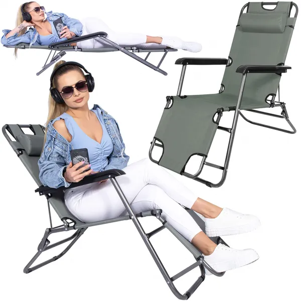 • Állítható, összecsukható szürke kerti napozóágy 4,6 kg fém/poliészter