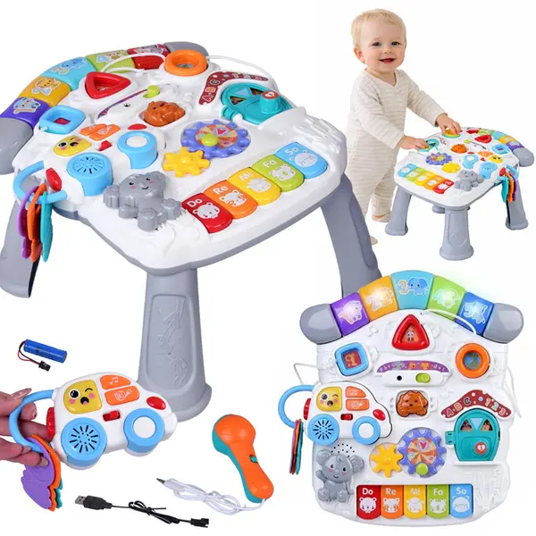 • Interaktív fejlesztő asztal babáknak, fényekkel, hangokkal és mikrofonnal