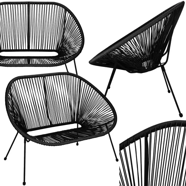 • 2 személyes fekete PE rattan kerti kanapé fém vázzal 114×75×88 cm