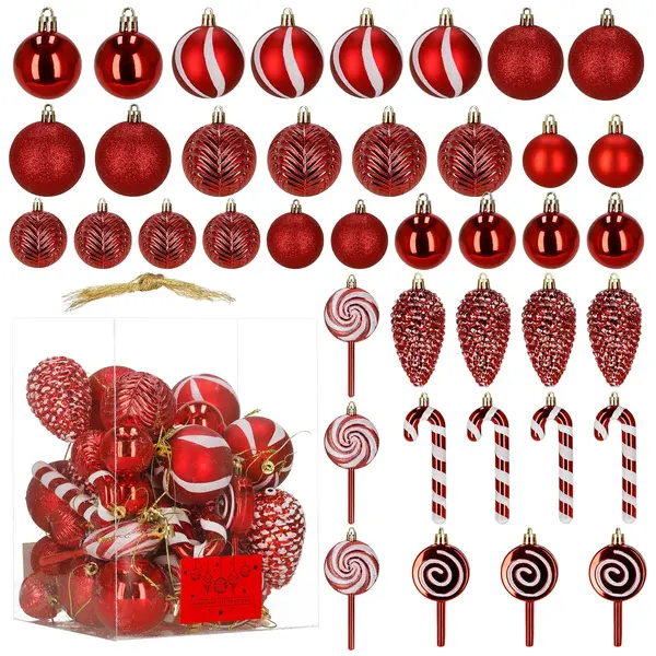 • Karácsonyfadísz gömb szett 40 db, piros, műanyag, törhetetlen