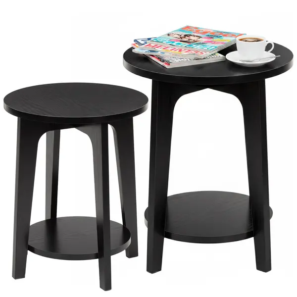 • Kerek fekete dohányzóasztal alsó polccal, 40×50 cm, 40 kg
