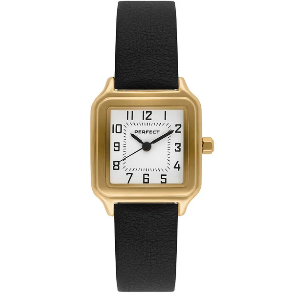 • Perfect E406-02 női кварc karóra, aranyszínű tok, fekete szíj, 3 ATM