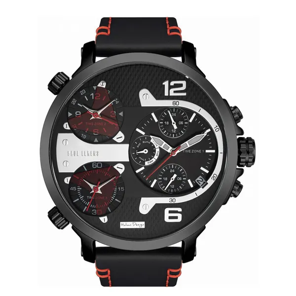 • Férfi karóra fekete számlappal, bőrszíjjal, dátummal és kronográffal