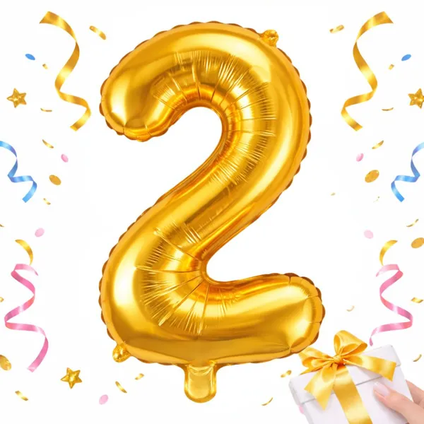 • Arany 2-es szám fólia lufi 66 cm, szülinapi dekoráció