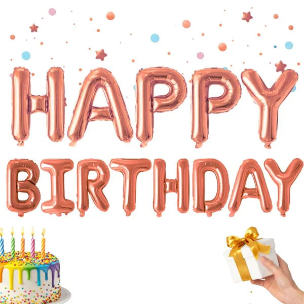 • Rózsaszín „Happy Birthday” fólia betűlufi girland, 13 db, felfújó szívószállal