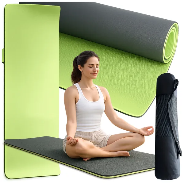 • Jógaszőnyeg hordtáskával, 183×60 cm, 6 mm vastag, kétoldalas, zöld