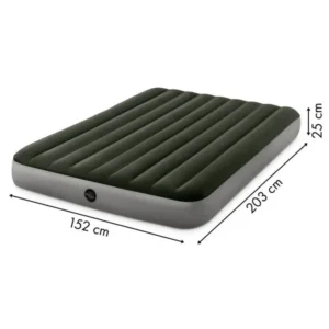 Tágas, felfújható INTEX matrac, amely dupla méretű kényelmet nyújt otthon, vendégágyként vagy kempingezésnél. A Dura-Beam Fiber technológia belső rostjai egyenletes alátámasztást adnak, így a gerinc természetes helyzetben marad és nem süllyed be.