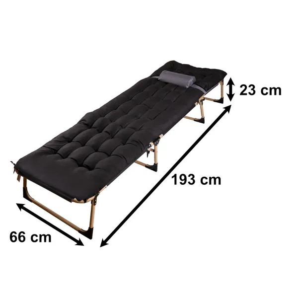 Összecsukható kempingágy 193 cm, acél váz, fekete
