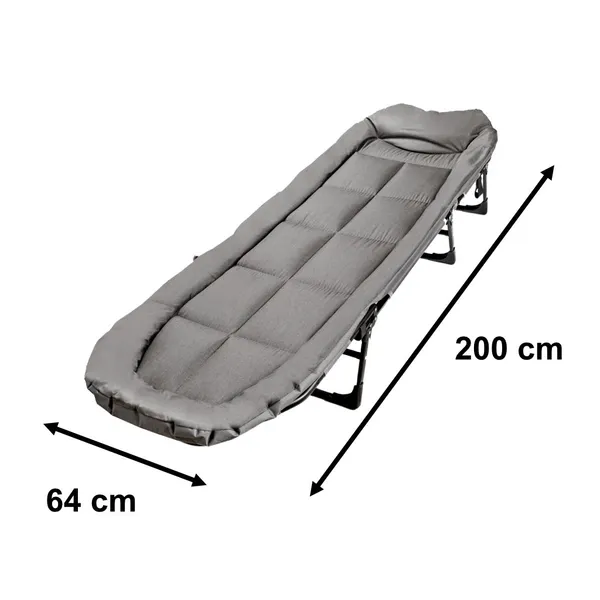 Akár kempingezel, horgászol vagy vendégeket fogadsz otthon, ez a sokoldalú összecsukható ágy gondoskodik a zavartalan pihenésről. A 190 × 63 cm-es fekvőfelület kényelmes, mégis a 3 szegmensű összehajtásnak köszönhetően kis helyen elfér a csomagtartóban vagy a gardróbban.