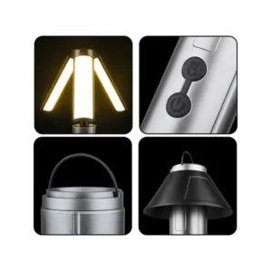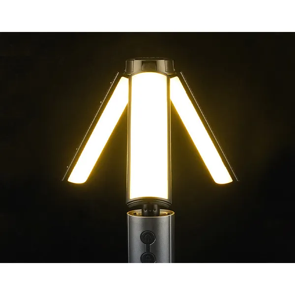 Állítható magasságú, szárnyas LED lámpa, amely zseblámpaként és sátorvilágításként is funkcionál, 3000 mAh akkuval és USB-C gyorstöltéssel. A 3 fényerőfokozat és a fókuszálható fény biztonságot, kényelmet és szabad mozgást garantál sötétben.