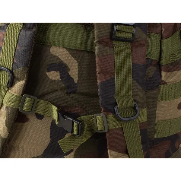 Akár többnapos túrára indulsz, akár katonai vagy airsoft bevetésre készülsz, a 48,5 literes kapacitású, sötét terepmintás taktikai hátizsák minden felszerelésednek biztonságos, rendezett helyet biztosít. A strapabíró, vízálló poliészter külső és az erős cipzárak megvédik a tartalmat a zord időjárástól és a kopástól.
