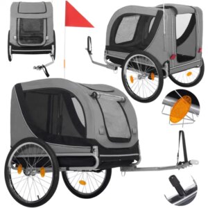 Kerékpáros állatszállító utánfutó, 40 kg, szürke-fekete, vízálló
