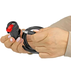 További fogantyú is tartozik hozzá, hogy kényelmesen rögzíthessük a zárat a kerékpár oszlopához. Két kulcs a záráshoz mellékelve.