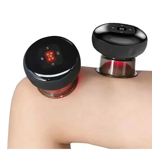 Elektromos kínai köpölyözés melegítő masszázs funkcióval, LCD kijelzővel, usb-c töltéssel, fekete