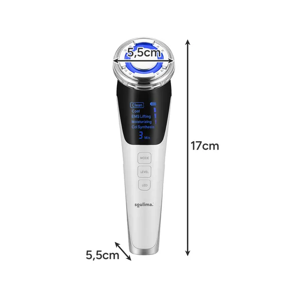 A Soulima 5 az 1-ben tű nélküli mezoterápiás arcmasszírozó professzionális hatékonyságot visz az otthoni bőrápolásba. Az EMS mikroáramok, az ultrahangos rezgések és a választható LED-fény (piros a feszesítéshez, kék a tisztításhoz) támogatják a kollagéntermelést, mérséklik a pórusokat és csökkentik a gyulladást. A 42 °C-ig melegítő funkció javítja a hatóanyag-felszívódást, a 6 °C-os hűtés pedig nyugtatja a bőrt és minimalizálja a duzzanatot.