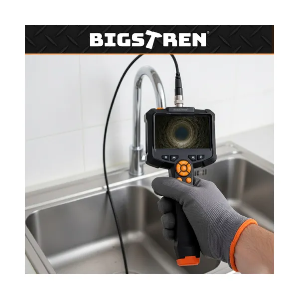 A Bigstren vezeték nélküli endoszkóp Full HD felbontású kamerával és 4,2” IPS kijelzővel teszi láthatóvá a nehezen hozzáférhető területeket. Az 5 m-es merev, mégis hajlékony kábel stabil irányítást biztosít, így a csővezetékek, motorblokkok vagy falüregek vizsgálata gyors és pontos.