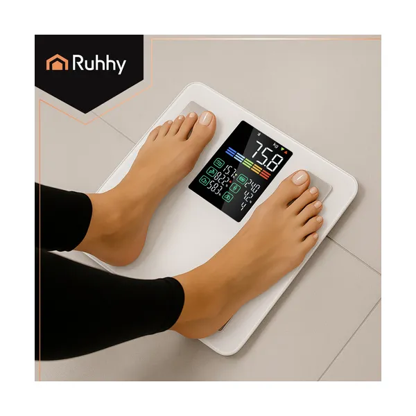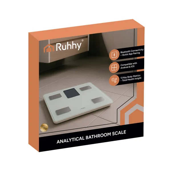 • Ruhhy fekete okos fürdőszobai mérleg, testanalízis, 226 kg, LCD