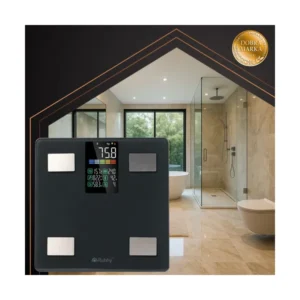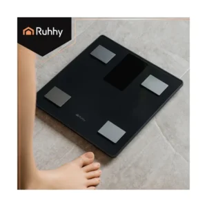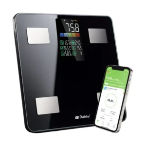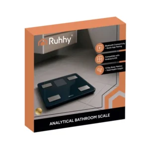 Szeretnéd pontosan nyomon követni testsúlyod és testösszetételed alakulását? A Ruhhy fekete okos fürdőszobai mérleg BIA technológiával dolgozik, és Bluetooth-on keresztül azonnal szinkronizál a díjmentes Feelfit alkalmazással.